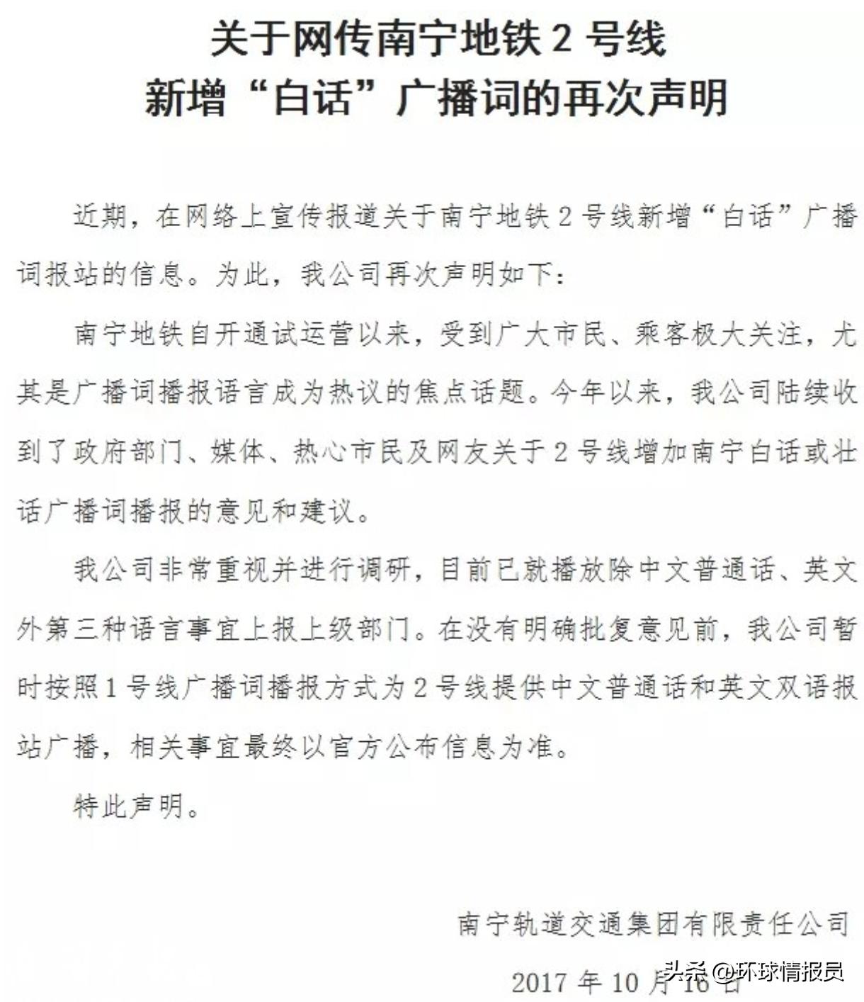 3、公平性:南宁市区为白话方言岛,郊区多为平话区,随着地铁线路延伸至郊区,平话使用区的居民可能对白话报站产生“文化挪用”之感。 这就是为什么年年都有提案,年年都不了了之。